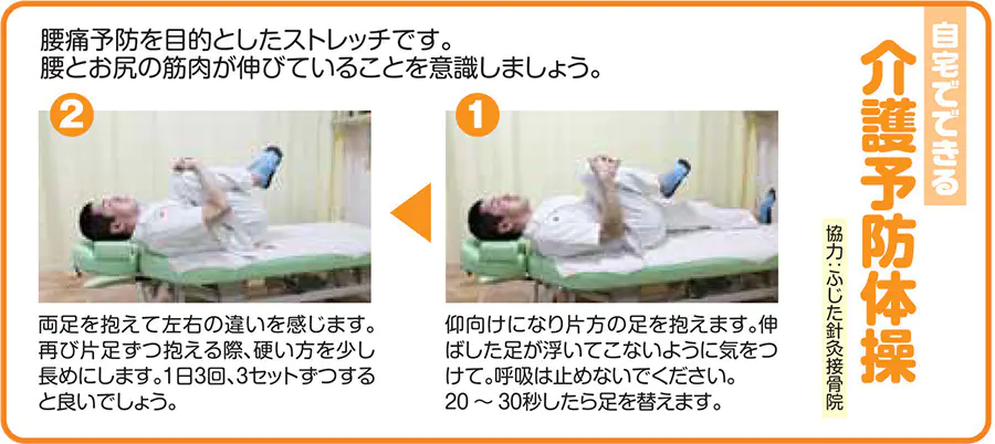 再び片足づつ抱える際、硬い方を少し長めにします。1日3回3セットずつすると良いでしょう。