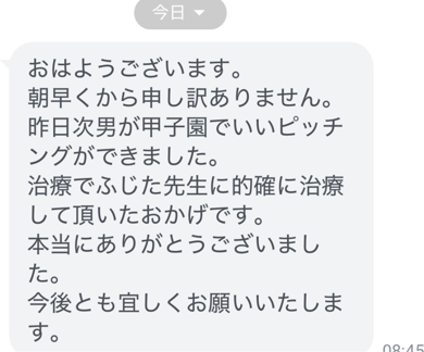 当院では、肘の状態だけでなく、練習量や身体の使い方まで含めて丁寧に確認し、一人ひとりに合わせた施術とアドバイスを行っています。